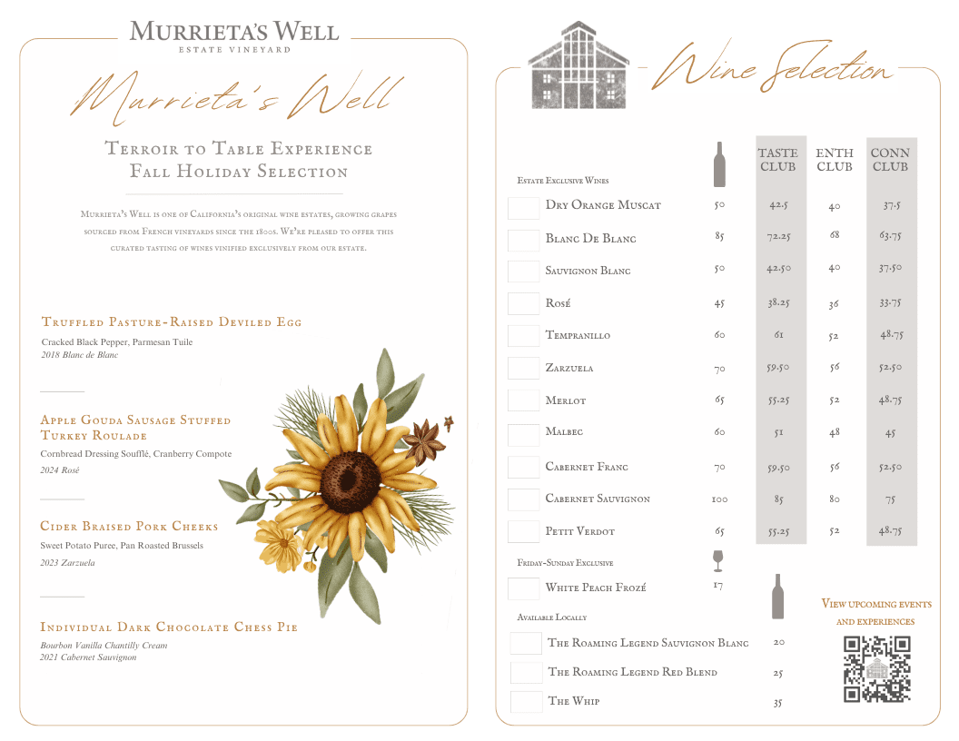 Embark on a captivating journey through the flavors of Murrieta’s Well with our exclusive “Terroir to Table” wine and food pairing experience. Indulge in exquisite pairings highlighting fresh, local ingredients paired with a selection of Murrieta’s finest vintages.